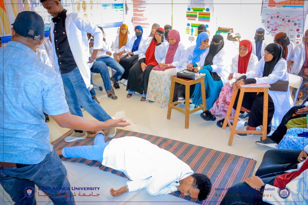 Ardayda Kulliyadda Medicine ee Semesterka 2aad ee East Africa University ayaa qaadanay xiisad layli-gacmeed oo ku saabsan sida loola tacaalo xaaladda ku margashada (Choking) iyo habka saxda ah ee loo sameeyo Recovery Position.